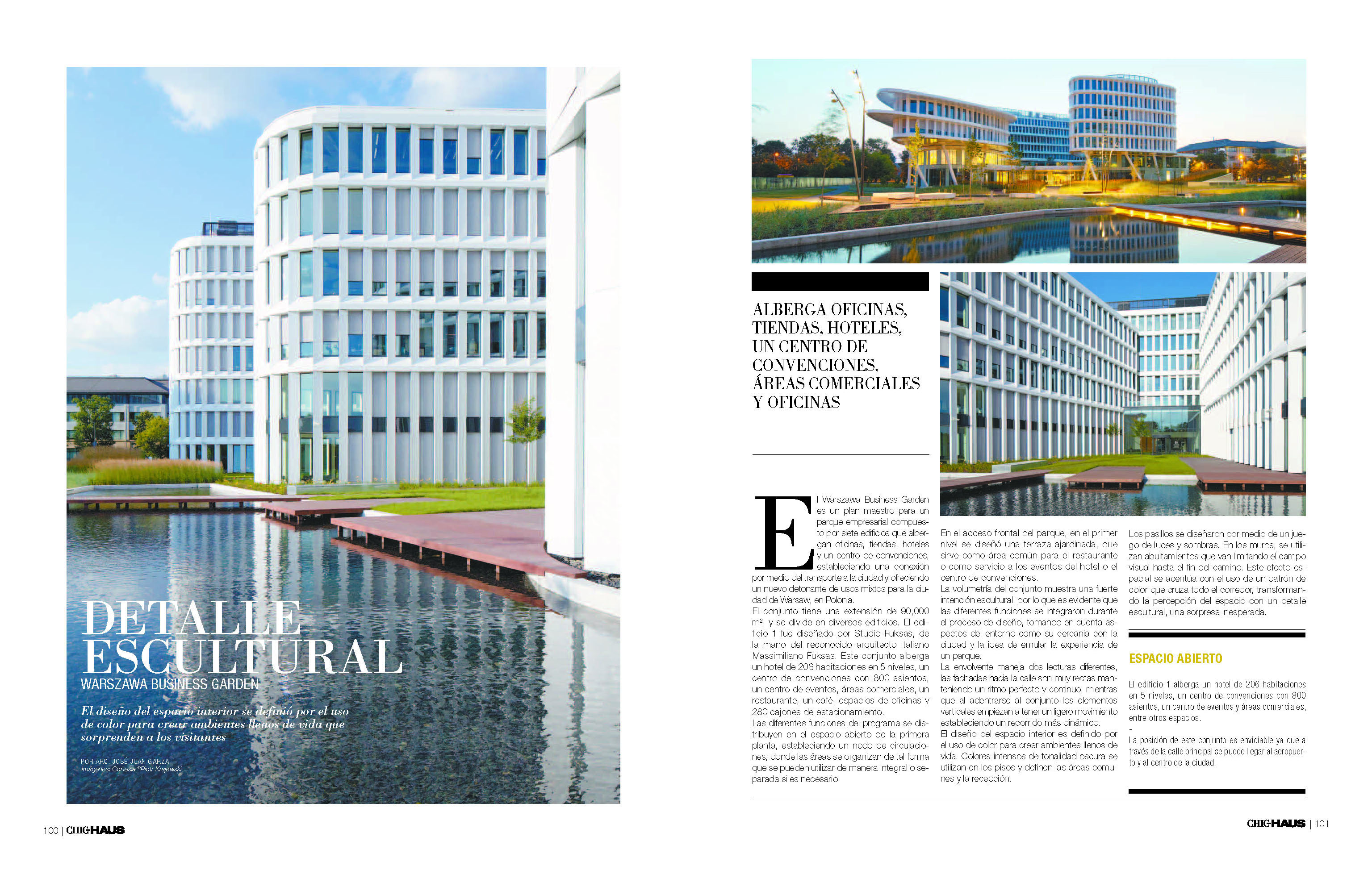 El Warszawa Business Garden es un plan maestro para un parque empresarial compuesto por siete edificios que albergan oficinas, tiendas, hoteles y un centro de convenciones, estableciendo una conexión por medio del transporte a la ciudad y ofreciendo un nuevo detonante de usos mixtos para la ciudad de Warsaw, en Polonia.