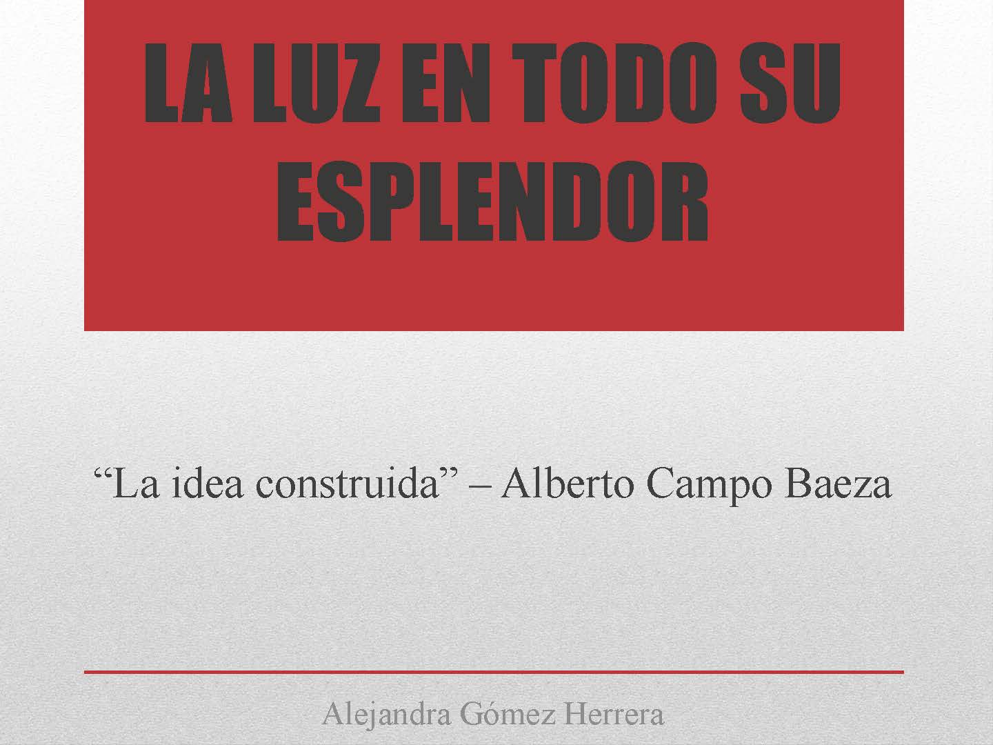 Análisis, síntesis e interpretación del libro “La idea construida” de Alberto Campo Baeza. Alejandra Gómez Herrera.
