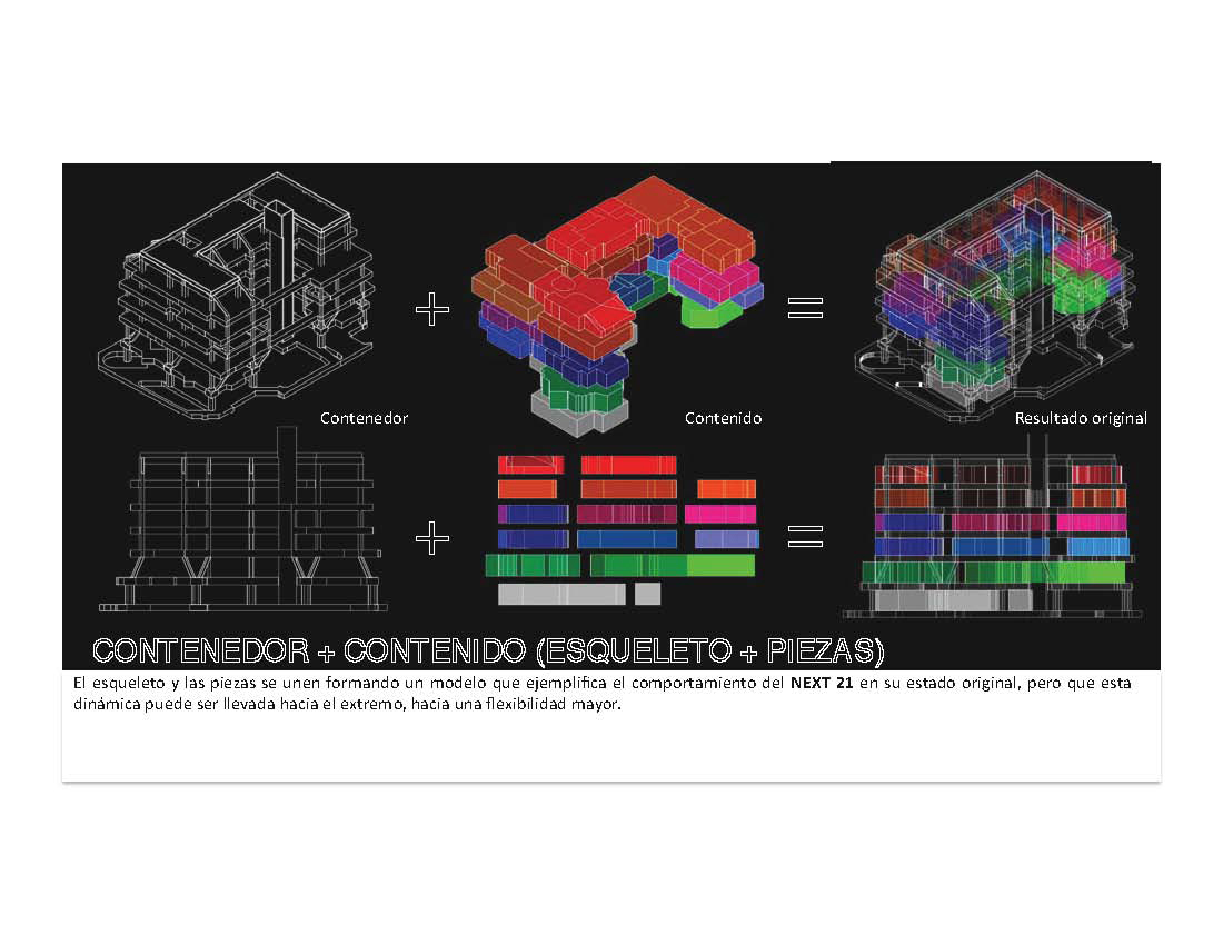 Análisis realizado en el Taller «Habitar el Presente» a cargo de David H.Falagán. Trabajo en colaboración con Futuro Suzuki. Se realizó el análisis del edificio NEXT 21, para posteriormente desarrollar una maqueta que reflejara las condiciones específicas del proyecto y que adicionalmente pudiera servir como un juego didáctico interactivo, con el cual se aprendiera de las características del edificio.